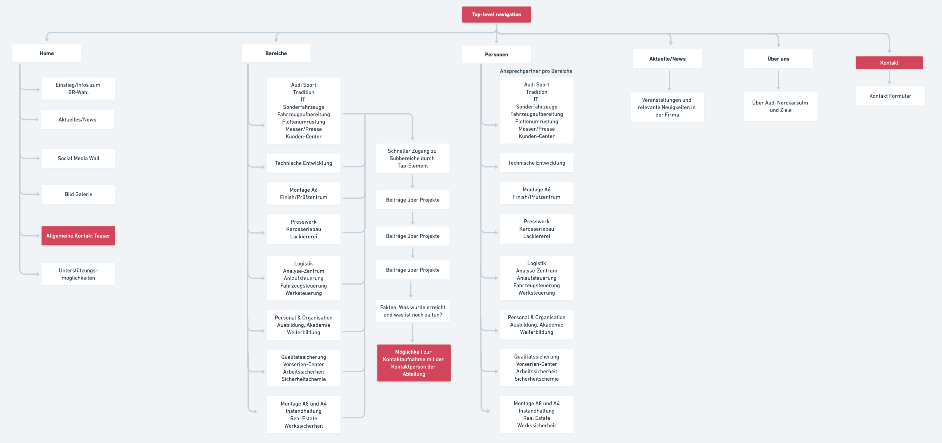 Konzeption einer internen Website, die alle wichtigen Informationen für Mitarbeiter von Audi Neckarsulm an einem Ort zusammenfasst