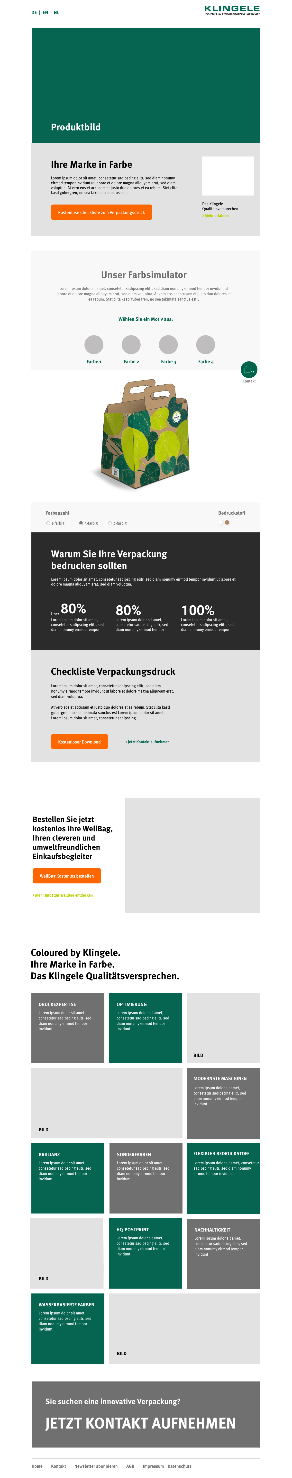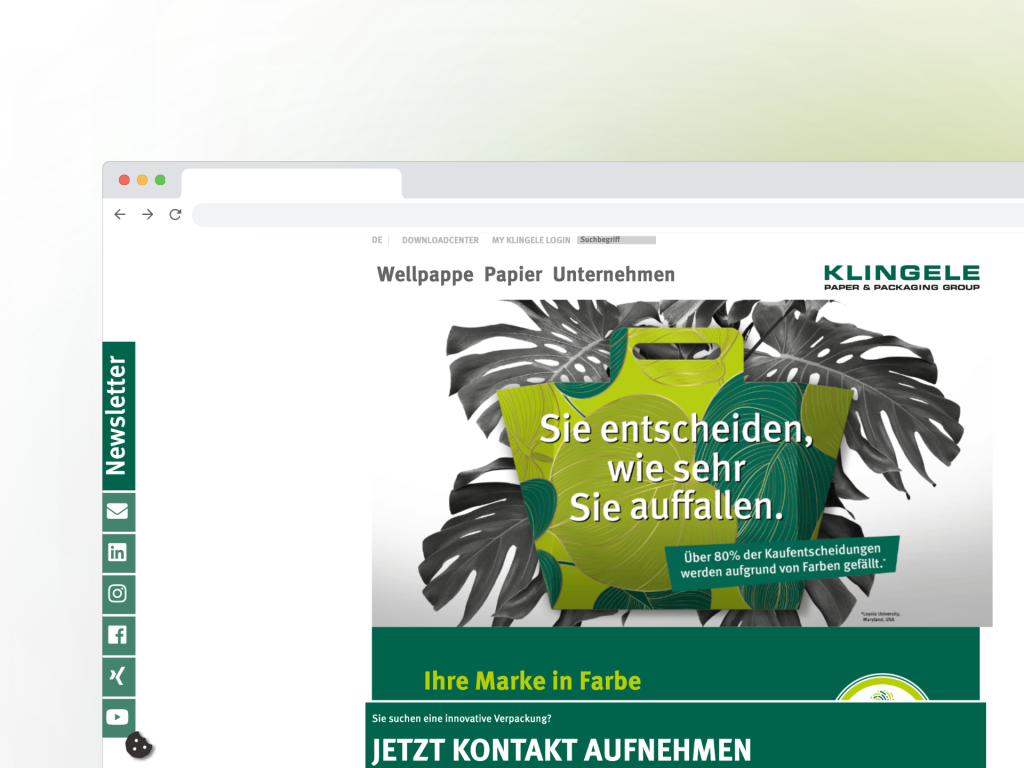 Die Konzeption einer Landingpage soll die Aufmerksamkeit der Kunden erregen und sie dazu bringen, sich mit den neuen Packaging-Technologien von Klingele zu beschäftigen